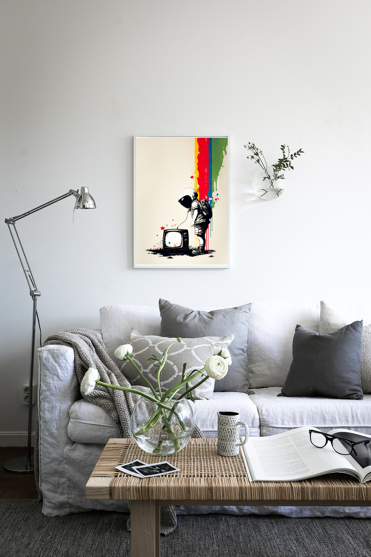 Förtrollande affisch med en symbios av nostalgi och galaktisk dröm, fångad i en konstnärlig dans av tid och fantasi.